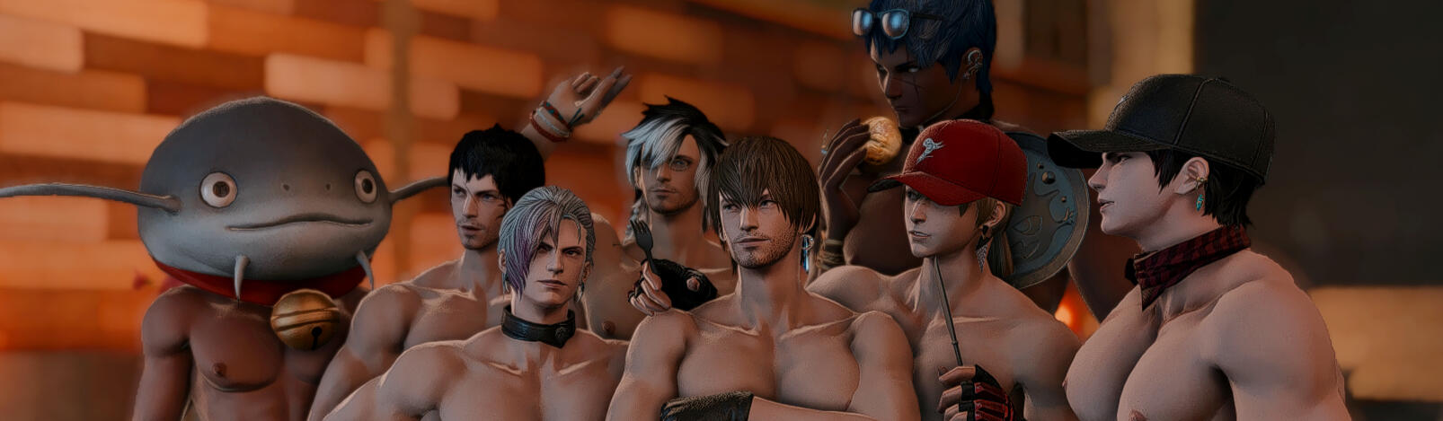 Do visit the other venues that our staff have, where they are (probably) not running around shirtless.Besides the topless-ness, this venue is considered SFW (Mostly). It MAY get pretty suggestive, but do keep any outright NSFW RP or comments to private chats.This is not a strict RP venue, casual chats are fine!Any disruptive chat or actions (RP or otherwise) will be viewed with extreme prejudice and you will be given a warning. Further disruptions will result in blacklisting.Not all our staff are well-versed in RP, so if that is what you prefer, please check with the staff on duty if there are any Hyurs that matches your RP requirements!There is no Syncshell for the venue. You may ask individual staff for their secret code, though please remember that staff are not obliged to share if they do not wish to do so.And finally~ If you like us or our services, or wish to share any Gposes, tag us on X (Twitter) with #MEATHOUSE_XIV.